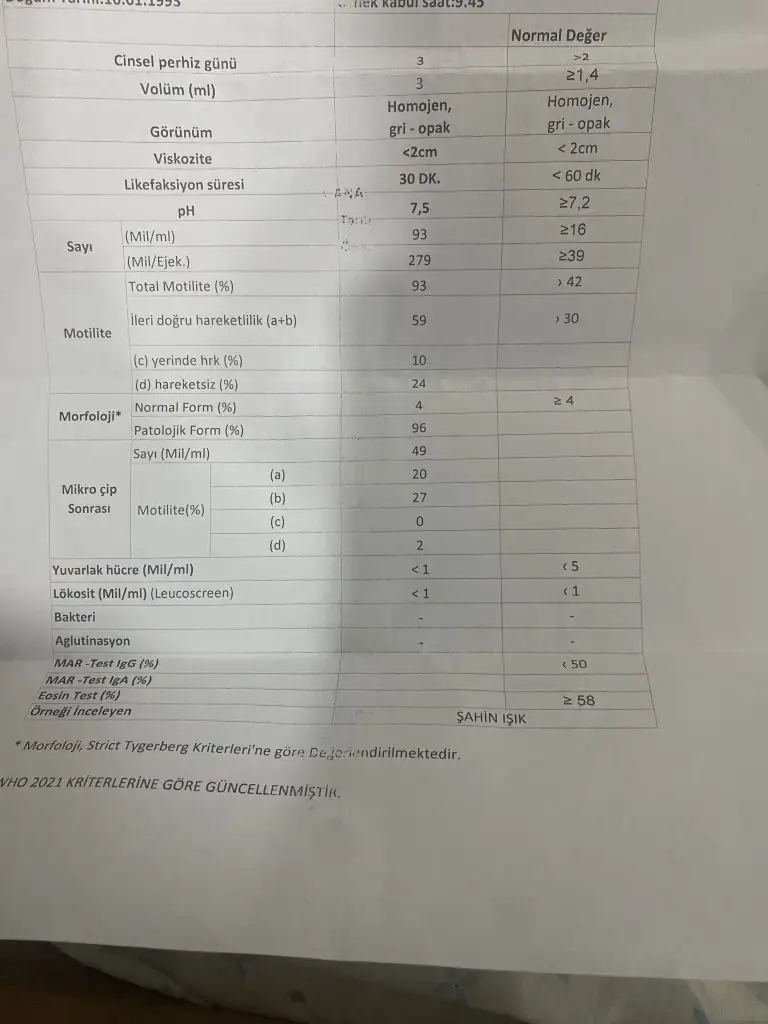Attım bu sekilde bizde normalde iler hozda hafif düsüklük vardı suan iler hızlıda kac sperm gosteriyor bu degerlere gore sperm sayısı falan