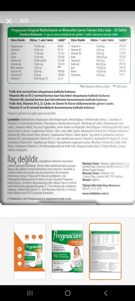 Evet cnm daha var gunumuz madem gitceksin sana yaoman gereken testleri doliyim eksik olanlari yap canm dahileyeden yaptir folat,feritin,b12,prolaktin(süt hormonu),demir,d.vitamini, tsh bunlari yaptr gerekirse ekstra vitaminde kulln ben pregnacare 19vitamin li olani kullniyorum icinde gebelik icin etken her vitamin bulunuyor trendyoldanda alabilirsim eczanedende benim saglik ocagindaki doktorum tavsiye etti gebelik dusunuyrum diyince kendine hamile kalmadan once baslamis ve hep hamilelik boyunca kullnmis sana resmini aticam bak iceriginide oku hatta burda topiklerde kullnanan cok kadin varCanım doğru söylüyorsun bende yoğun çalışıyorum bu hafta müsait bi günümde hemen gidip baktırıcam inşallah ama hayırlısıyla inşallah gerek kalmaz bebişiii tutar bu ay çok umutluyum ama hayal kırıklığı da yaşamak istemiyorum bana kalsa hemen gidip sabah test veririm ama işte daha günümüz var