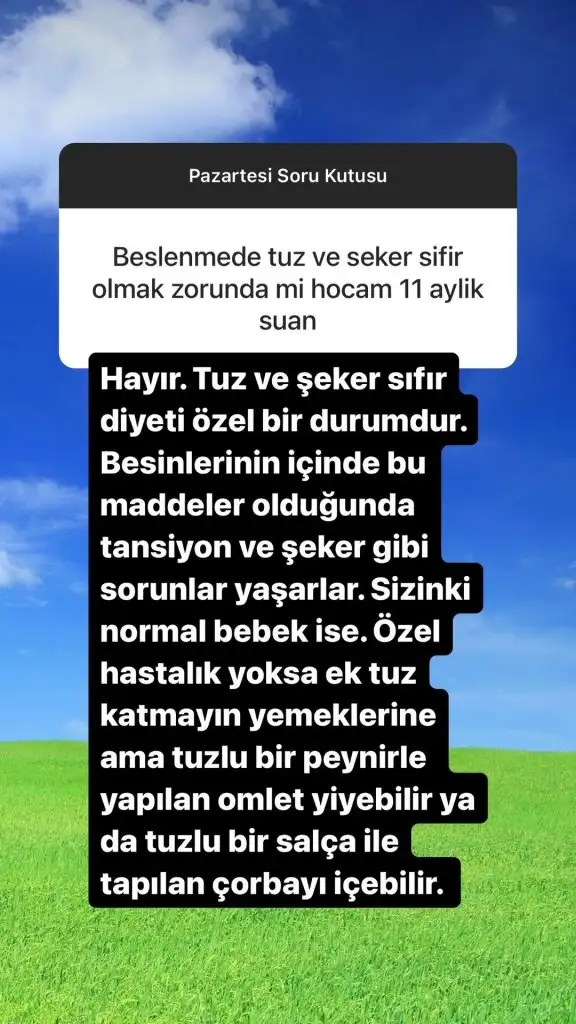ben artık çok saldım normal yemek bile veriyorum. epeydir iştahsız olduğu için herkesten veto yedim tatsız tuzsuz tabi yemez çocuk falan dediler.. yine tuzsuz yapmaya çalışıyorum ama kendi yemeklerimizden de veriyorum