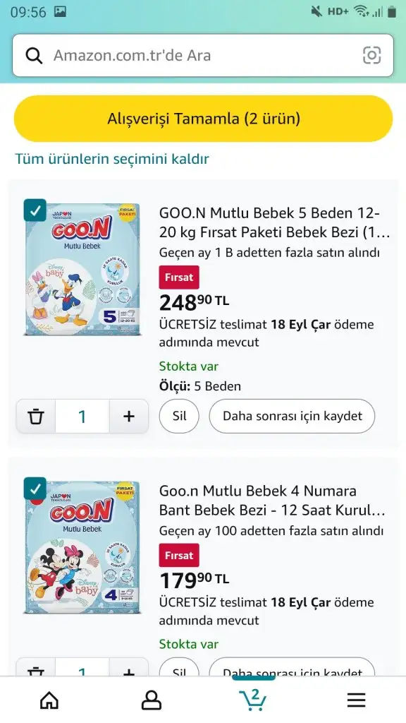 Ben de e bebek uygulamasında güzel indirimler var, onu söyleyeyim.Arkadaşlar yine bez indirimi buldum, bilmiyorum faydalı oluyormu size ama ben güzel indirimleri çok seviyorum, bebek bezini adet fiyatı ne göre hesaplar, 3 tl nin altında bulursam alırim. Amazon da 5 numara goon 100 lu bez 248 tl ( adet fiyati 2.48), 4 numara 90 li bez 179 tl (2 tl adeti)