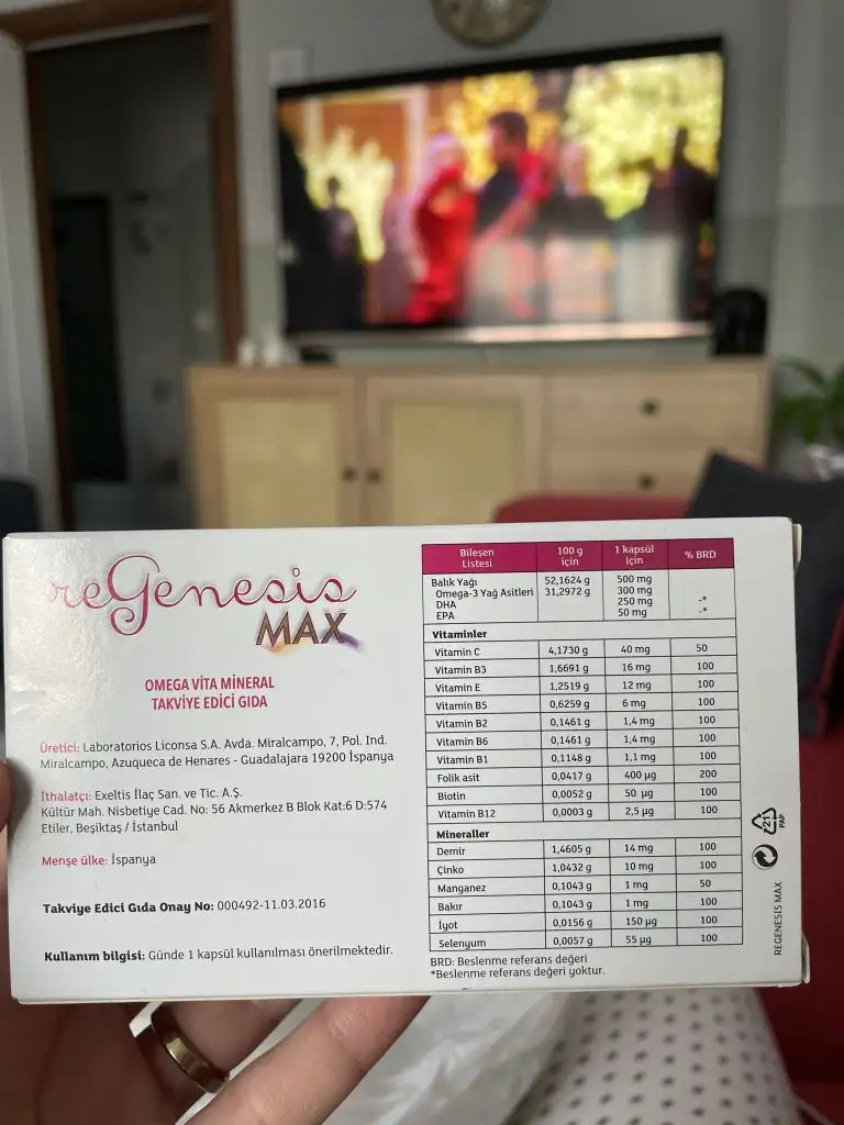 Ahh şimdi gördüm mesajı sipariş verdim bir tane önerdi arkadaşlarBen başladım canım bana regenesis max verdi doktorum eczaneden 130 liraya aldım . 30 tane var içerisinde günde 1 tane içiliyor . İçeriği de baya zengin hatta bak resmini ekleyeyim