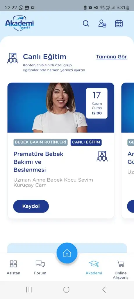 Aptamil in ilk adimlarim uygulamasi var. Tavsiye ederim hekimler ve ebeler canlı yayın yapıyorlar. Yaptıkları yayınların konu başlıkları ile canlı eğitimler veriyorlar.