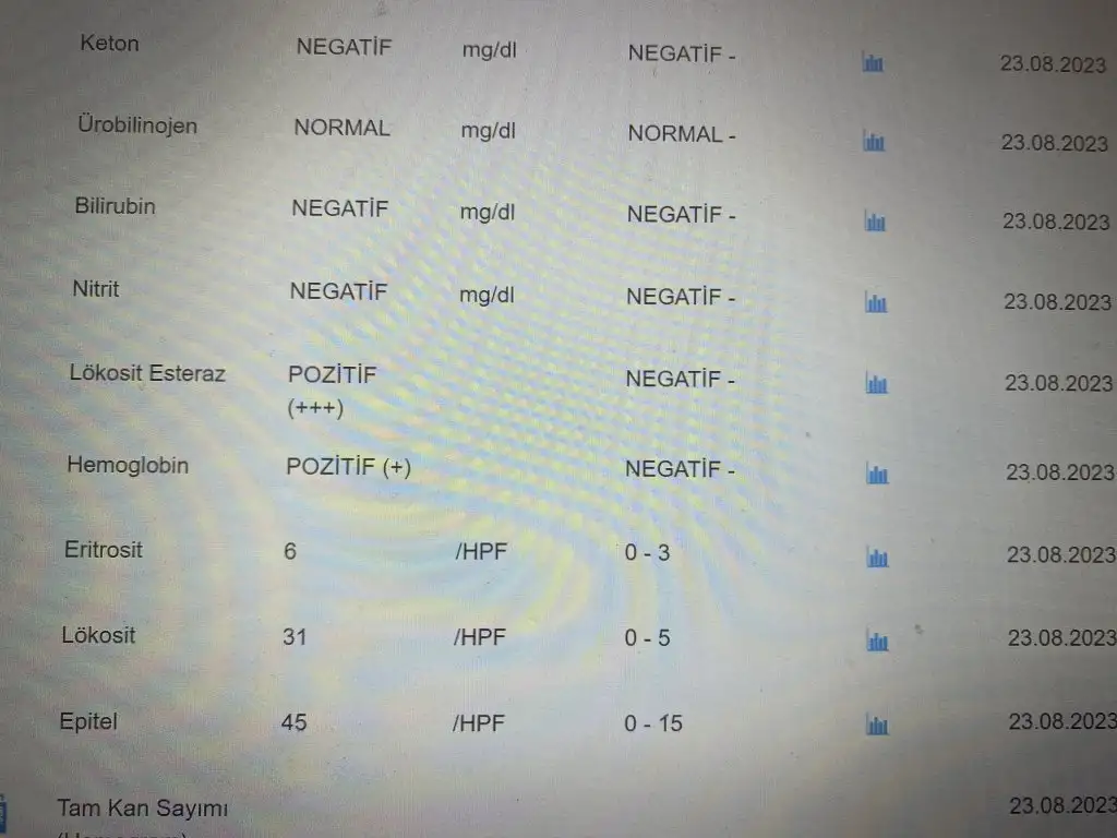 Bakteri diye yazmıyor ama değerler böyleİdrarda bakteri olan kısımda mı yazıyor canım kaç çıkmıştı acaba ?