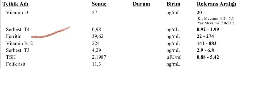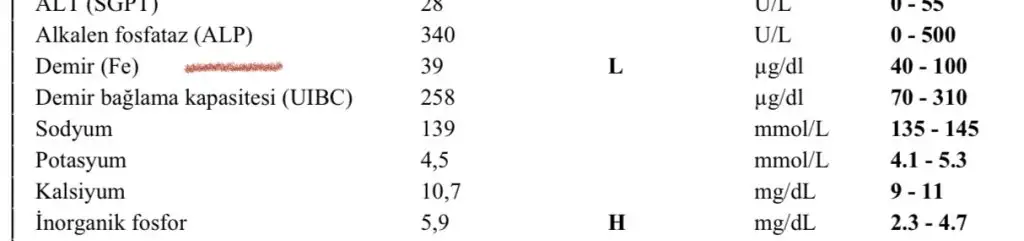 Teşekkür ederim canım. Geçen gün demir değeri ile ilgili bir yorum yapmıştın aklıma geldi şimdi, biz bugün kan tahlili verdik demir için şöyle iki sonuç var düşük oluyor sanırım?