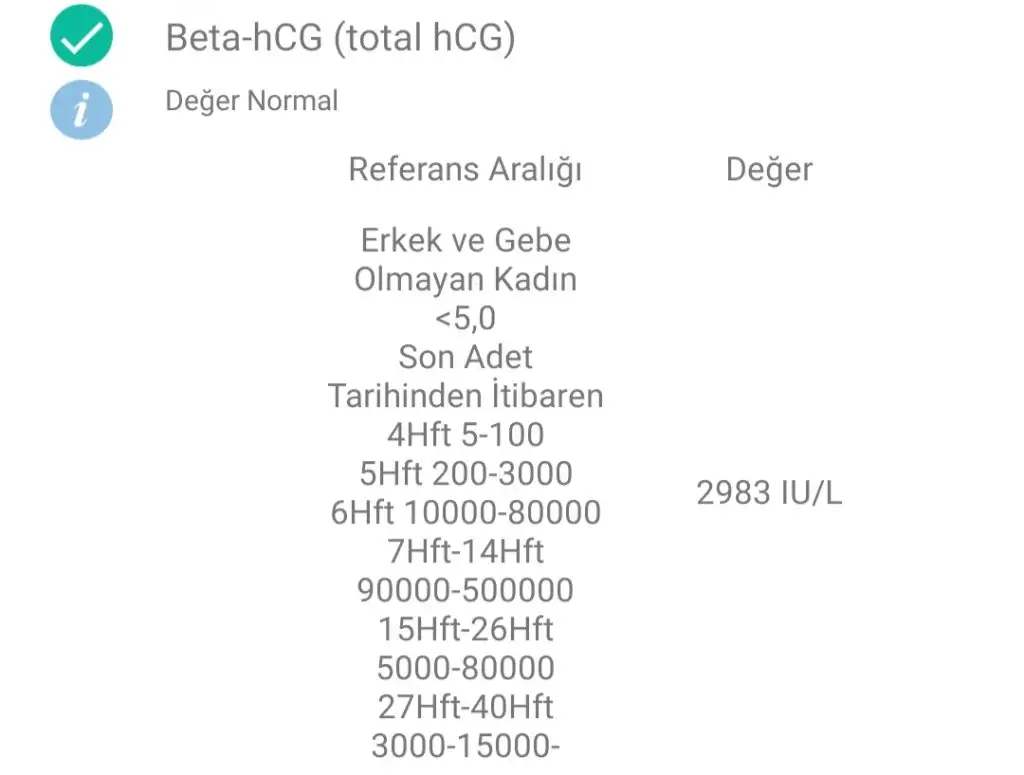Devlete de gitmeyi düşünüyorum canım, orada da bir doktorum vardı zaten bulabilirsem ondan randevu alcam. Bakınca 6haftalik değer aralığındayim evet ama 23 Mart'ta 181 olan değer bu kadar gün sonra nasıl 2983 olur