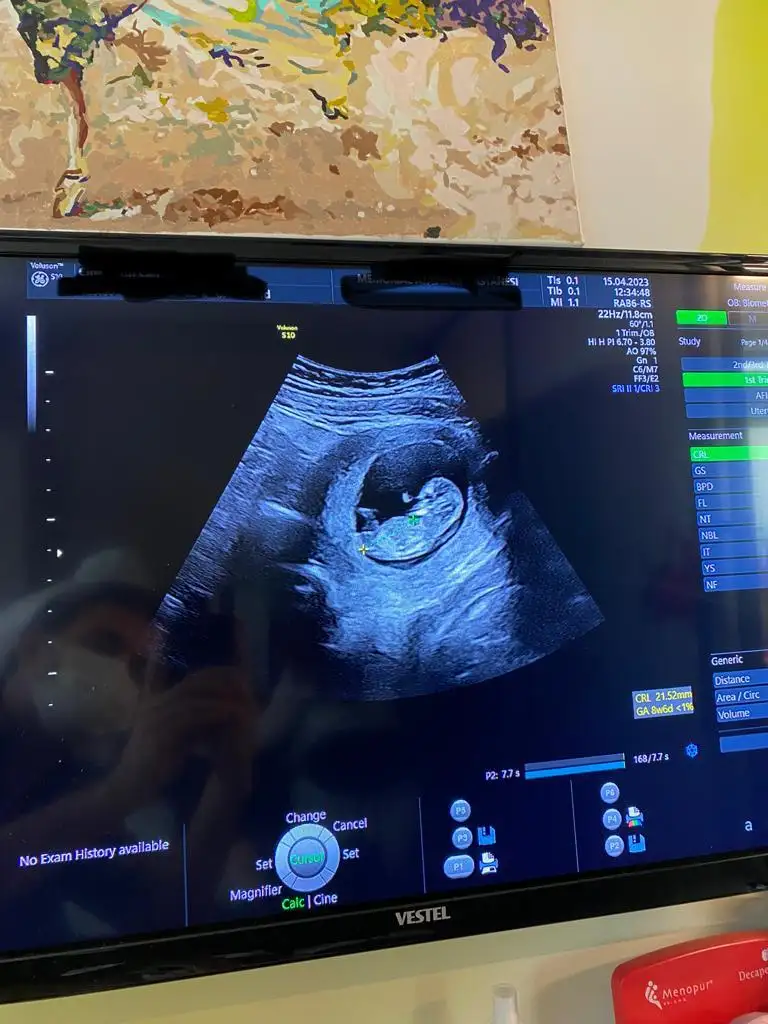 Ben geldiim. İlk resim beş haftalık. Vajinal ultrason, solda nokta kadar ama ramziye göre tutuyor.