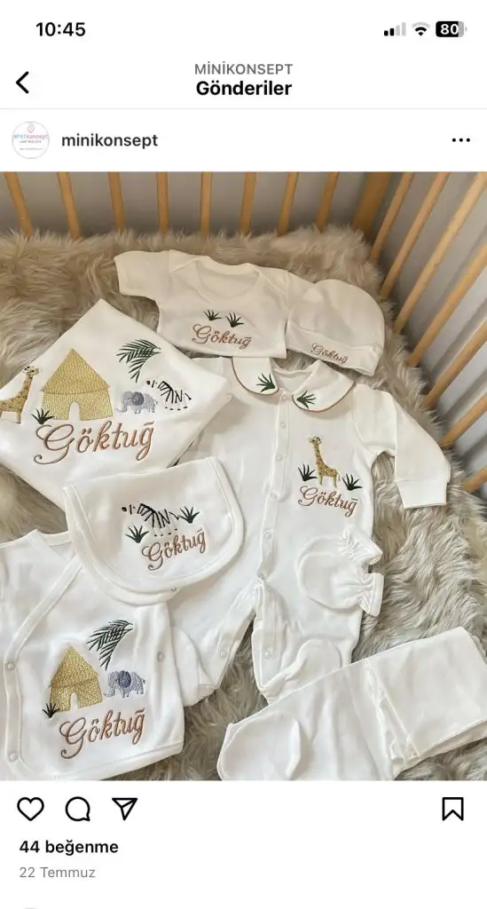 O dedıgın yer kalıtelı cok tutulan bir marka. Pamuk cokta guzel . Ben bır tulum şapka eldıven bırde battanıye olarak yaptıracagım. Oyle 6-7 lı setlerı sevmıyorum aynısından ne gerek var . Bakalım bu ay yaptıracagım ben ınsallah .Kızlar ben hastane çıkış seti yaptırmak istiyorum ama açıkcası çok kararsız kaldım. Böyle isminin yazdığı setler sanki daha çok hoşuma gidiyor.. tuğba kuğunun setleri var onlardan yaptıran var mı? Önerdiğiniz bir marka var mı ?