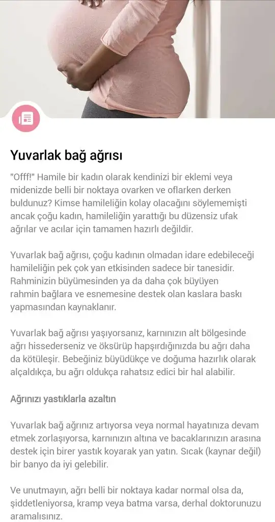 Benim kullandığım uygulamada da yuvarlak bağ ağrısı olarak yazılmış canim, int.te de baktım rahmin büyümesiyle alakalı yazıyorKızlar sancı ve kasılmaları olanlar için kullandığım uygulamada böyle bir bilgi var sizinle de paylaşmak istedim