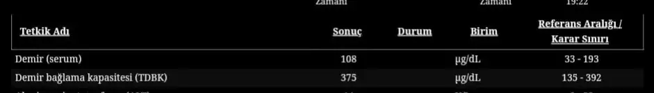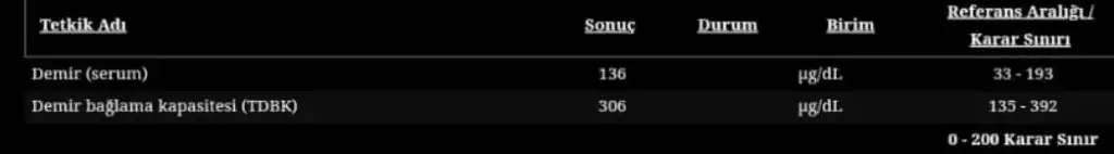 Canim senin demir seviyesi düşük ve demir bağlama kapasitesi yüksek çıkmış, muhtemelen kullandığın takviye vücutta iyi emilim olmuyor. Hangi saatlerde kullanıyorsun ona dikkat ediyor musun?