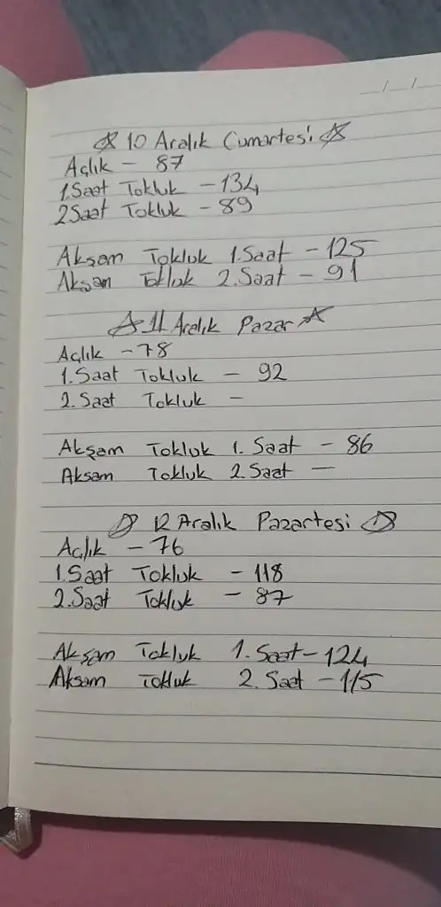 Yuksek degil aslinda,ilk saat iyi ikinci saat biraz daha dusuk olsa daha iyi.Bence takviyeler etkilemiyordur,yine de bilenler yazarlar.Bizim bu içtiğimiz takviyeler sekeri etkiliyo mu acaba ya. Aksam 1.saat tokluk 124 2. Saat 115 cikti. Diger gunlerden baya farkli. Bi de aksam bi dilim tam tahil ekmek salcali kabak patlican li sebze yedim salatalik havuç domates kıvırcikli salata yedim bu yukseltir mi yoksa..