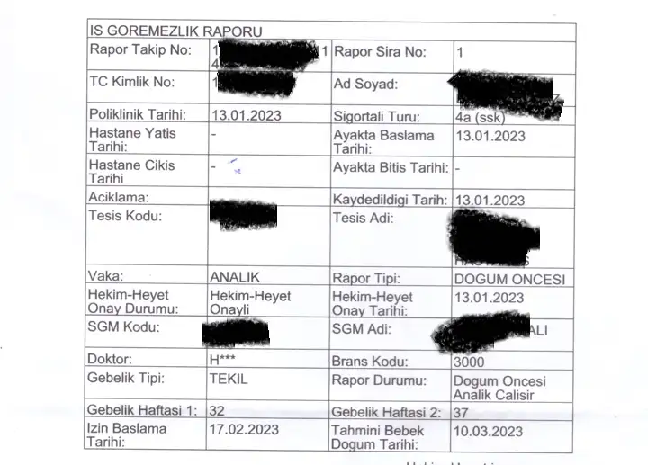 canım benim raporu ekledim 17.02.2023 e kadar diyor o da 37+0 a denk geliyor. 38 e nasıl denk getirmiş ki zaten kanunen 37 ye kadar çalışabiliyorsun bi saçmalık olmuş ordaSekretere o kadar izah etmeme rağmen Sgk ayarlıyor bizlik bir şey yok deyip durdu. Benim bildiğiniz 38 de rapor bitiş tarihim![]()
