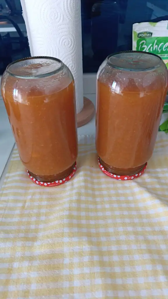 Canım vakumladiktan sonra uzun süre dayanır sıcak sıcak koy kavanoza eşin sıkıca kapasin kapağını sonra ters çevir zaten vakumlaniyor. Ben 3 litre sudan yaptım 2 kavanoz 1 lt çıktı. Şu Bulgur çorbasından da yapıcam yarın onu da vakumlayip buzdolabina koyucam
