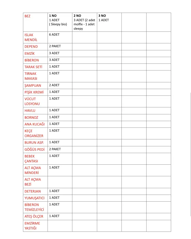 Telegram da konuştuğum bayan, yenidoğan 20.30 adet bez. Ve 2.3 numara bez söylemiştiKızlar listenin son haline göre bence yeni doğan bez ihtiyacı kesin olacak.