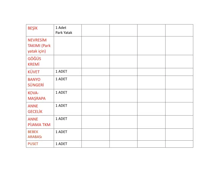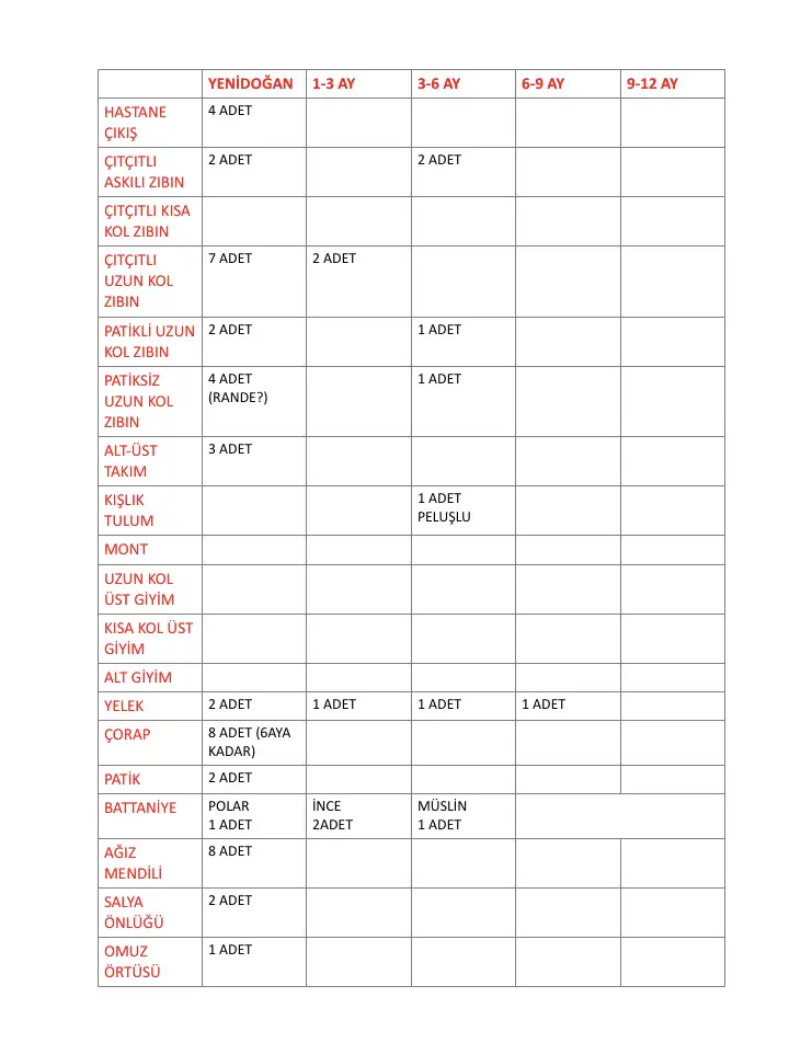 Kızlar listenin son haline göre bence yeni doğan bez ihtiyacı kesin olacak.