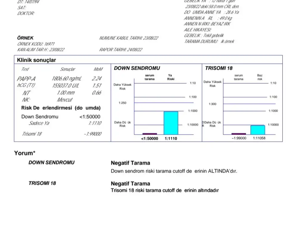 Risk oranları ortalama değerin altında canım. Öyle anladım. Düşük yani oran. Geçmiş olsun. Sağlıkla gelsin inşallah 🥰🙏🏻