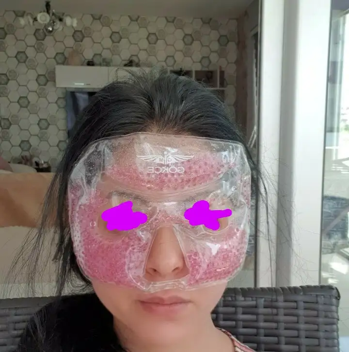 Hatta şimdiki halim böyle 😅 bu maske dolapta 1 saat durunca 1 saat etkili bir sekilde soguk oluyor. Benim cok işime yariyor, arkasında lastiği var,Tavsiye ederim.