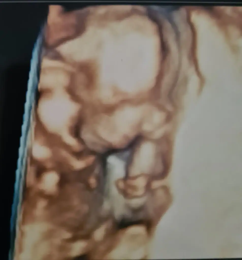 Bu arada bu sefer yalnızca 3 boyutlu görüntü fotoğrafını verdi. En güzel görüntüyü seçmek için baya uğraştı ama çok zor anlaşılıyor :) Yine de yükledim. Gözleri, ağzı, çenesi görülüyor. Tek eli kulağında yavrucağın