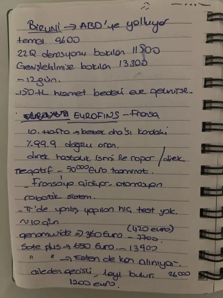 Aldim aldim yazdim hatta forosunu paylasayim. Benim doktorum eurofinsi onerdi onlarla calisiyolar daha dogrusu oraya yapitiricaz. Denge nereye yolluyomus?Selam,bende haftaya fetal dna yaptıracağım.Ikili test sonucu sayısal ortalama alıyor. Yaş vs.gibi şeylerde hesaplıyormus.Bana çok mantikli gelmedi.Bende denge laboratuvar da yaptıracağım.Sanirim 280 usd.Sen fiyat bilgisi aldin mi?