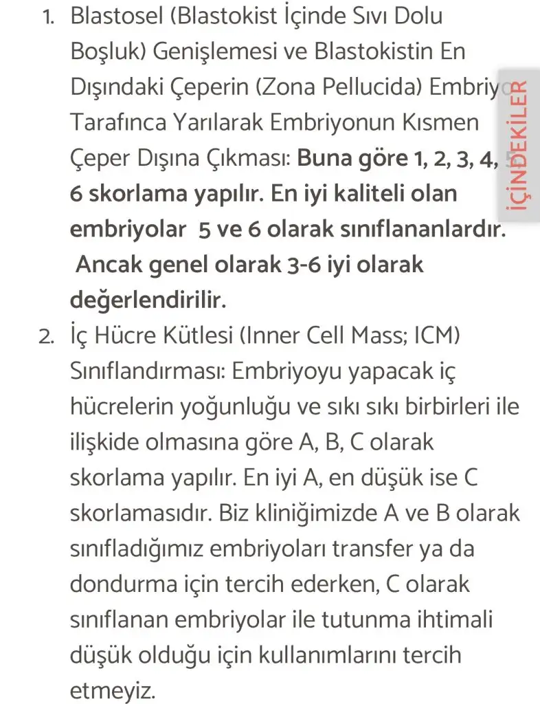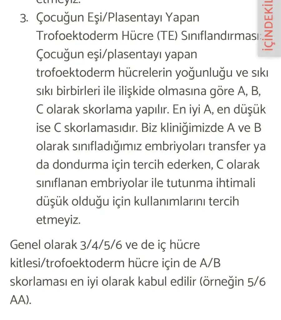 Yeniden deneme yedekte olanları dene..arkadaşımda çok çok kalitesiz embriyoyla hamile kalmış hatda doktor demişki ben sana yapmak istemiyorum tutmaz kesin demiş..ama bak şimdi MaşAllah oğlu olucak..O kızın yaşı 25 genç olurken sanki daha kolay tutunuyor embriyo..buna emin oldum ben..sende öyle etŞimdi bunuda merak eder oldum bugün embrıyoların harf harf sınıflandırılmasını sordum ama bana ısrarla söylemediler bişey. İyi kalitede olduğu söylendi sadece şimdi varsayalım ki en iyi kalitede değiller ve benim transferimde tutunmama sebebi embriyo kalitesiyle alakalıysa morfolojıyle alakalıysa 4 embrıyom da olsa tutunmaya bilir ve negatif sonuç alabilirim sizce yeniden tüp bebek mi mantıklı yoksa orta kalitede olan embrıyo transferi mi