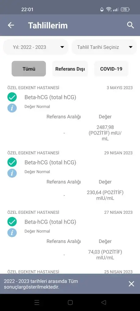 Yaptığım kan testleri bunlar için rahat olsun yükselir10. Gün 15 olan değerin mi pozitif oldu