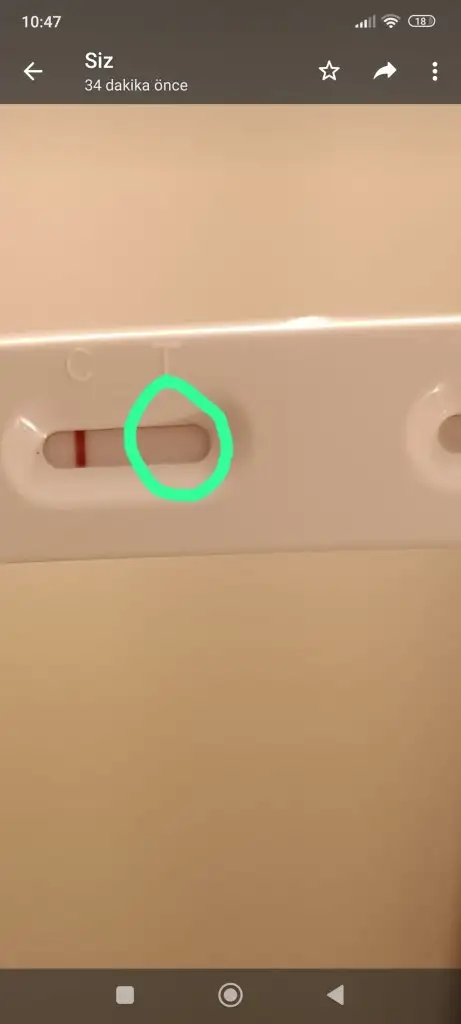 Evet var bir çizgi çooook hafif gölge gibi. YArın sabah ilk idrar ile yaptığında gebelik varsa daha koyu çıkması lazım.Var mı sizce ilk on dakika ben hayalet bir şey gördüm ama resime yansımıştır umarım Eki Görüntüle 3256929