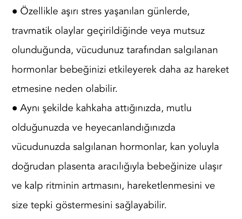 Happy mom da bunu okudum az önce. Ben de baya hissediyorum bunu. Bu hafta çok depresiftim sebepsiz, bu sabah da eski bir arkadasımla ilgili çok çok acı bir haber aldım akşama kadar hiç hissetmedim hareket falan. Sonra kuzenimizin cocugunun doğum günü vardı orda kafam dağıldı rahatladım şu an daha iyiyim bebekler de daha hareketli. Belki pozisyonu engel oluyodur ben soldaki bebeği daha cok hissediyorum mesela sağdakini durusundan heralde o kadar güçlü ve sık hissetmiyorum.Ya kızlar günlerdir bebek çok az hareket ediyor etse de çok zayıf oturdum ağlıyorum resmen şu an perşembe günü gittim kontrole niye böyle oluyor anlamıyorum;(