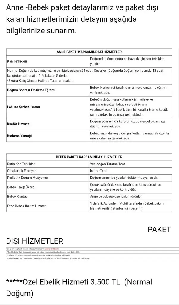 Canim ben Maslak Acibadem'de dogum planliyorum.Bu sorunun cevabı bana da lazım. Acıbadem ataşehir veya altunizade de yapmayı planlıyorum. Dün bir doğuma hazırlık eğitimine katılmıştım. Orada hastane çantası konuşulurken listelerde bulunan bazı ürünlerin hastane tarafından da verilebileceği söylendi. O yüzden hastane ile görüşüp ona göre hazırlayın ve çok eşya götürmeyin dendi. O yüzden hastanenin vereceklerini iyi bilmek lazım. Sigortanın kapsamına göre de değişiyor. Yoksa en yakın 2 arkadaşımdan biri altunizade de diğeri ataşehir de doğum yaptı 2 ay önce. Ama sigortalarımız farklı