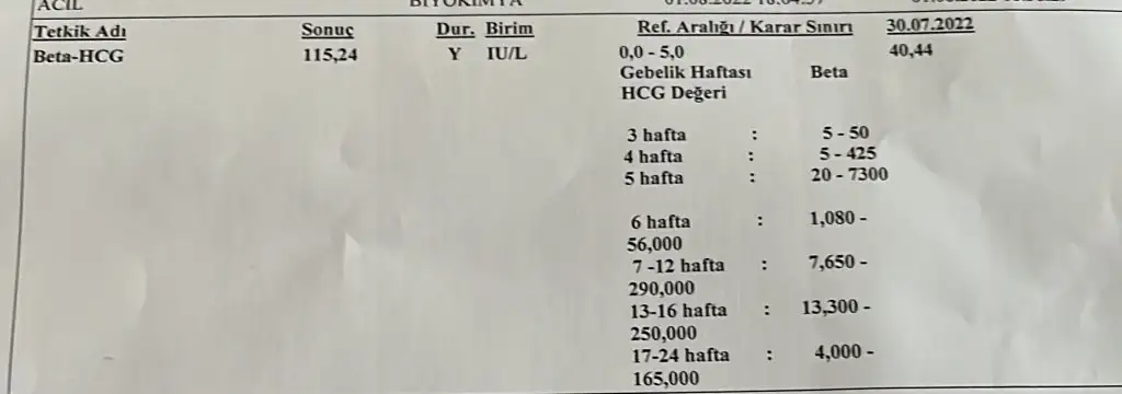 gayet iyi canım gerisi artık rutin takibe kalmış hayırlı olsun :)Kızlar merhaba. Bat 30 temmuzdu. 30 temmuz akşamı hcg 40,44 çıktı. İki gün sonra yani 1 Ağustos'ta tekrar kan tahlili verdim. 115,24 çıktı. Sizce nasıl gidiyor? Artış 3 kata yakın ama değer de önemli mi sizce