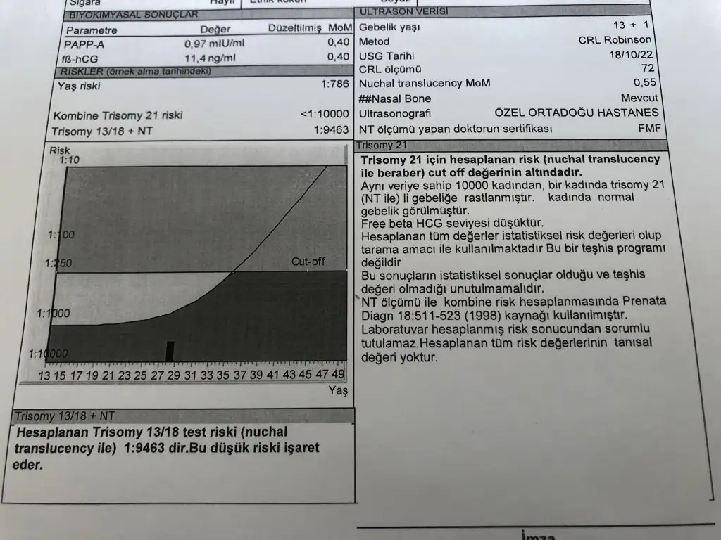 Merhabalar bana da orta risk var 3lü taramadan sonra mutlaka perinatolojiye gitmen gerekir dedi. Ultrason sonuçlarına göre birşey saptanmadı ama free hcg ve papp-a düşük dedi kan sonuçlarına göre risk varmış. Anlamadım, risk var mı endişelenmeli miyim dedim,takip edilmesi gerekir endişe yok diyemem dedi. 3lü tarama iyi gelse bile mi gitmeliyim dedim ne olursa olsun herkesten aminyosentez ıvır zıvır bi kaç test söyledi anlamadım açıkçası çok canım sıkıldığı için. Raporda risk düşük diyor doktorum orta risk diyor ben anlayamadım sonucu böyle yada benzer olan birileri yardımcı olabilir mi