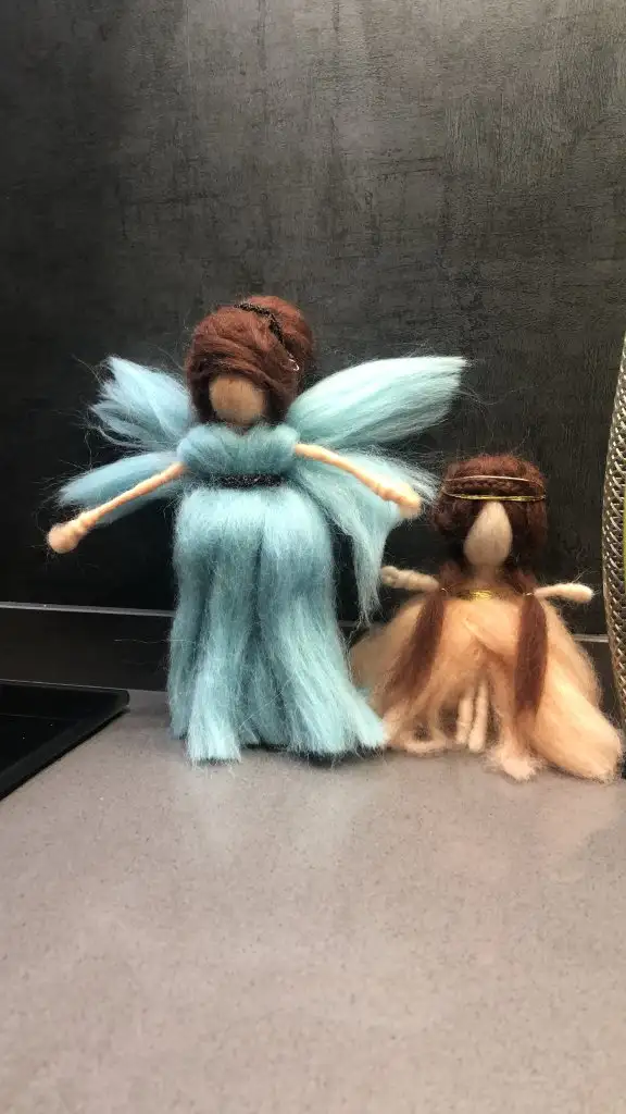 Bende böyle keçe bebekler yapıyorum. Bunlardan kapı süsü ve anahtarlık yapıp dağıtmayı planlıyorum🥰🌸 E B R U E B R U kurdeleliyi bulamadım🥲