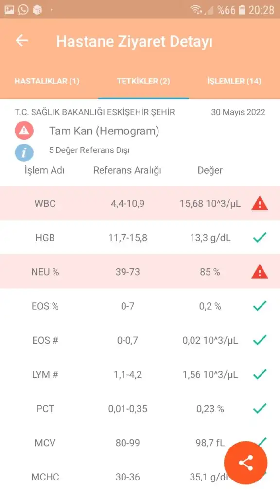 Canım wbc yüksek yani enfeksiyon var. Crp istememiş, keşke isteseydi. Norovirüs olabilir sizdeki. İhmal etme dahiliye ya da enfeksiyon hastalıklarına git mutlaka baksınlar. Ateş var mı?Saol kuzum saol.. cok kötüyüm ne yesem çıkarıyorum.kizimdan bulasti Burasi salgin kanıyo..Yarin nasil kalkip gidicem bilmiyrm ne olur dua edin kizlar.kizimda bende tez iyileseyim bebegede bisey olmasınekliyorum canim tahlilleriEki Görüntüle 3075829 Eki Görüntüle 3075830 Eki Görüntüle 3075831 Eki Görüntüle 3075832