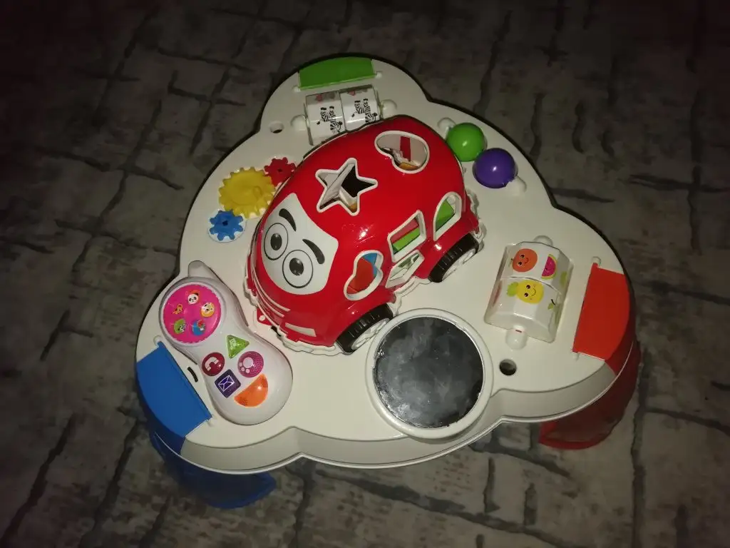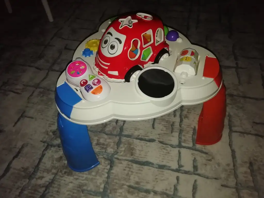aktivite masası üstünde pilli sesli müzikli telefon var, bir de şekilleri geçirmeli araba ayna. Onlar hoşuma gitti. 200 tl te oyuncak kalmadı, üstünde bu oyuncaklar var diye aldım