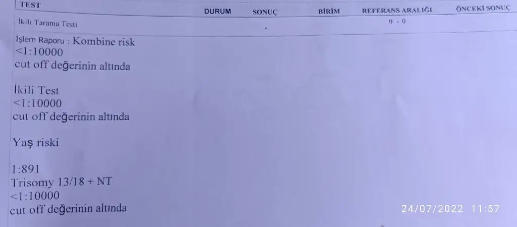Yani bende çok anlamıyorum ama 10 binde 1 demekki riskSonuc bolumunde '- 'yazinca acaba sonuc cikmadimi dedim .yani düşük mu oluyor benimkide