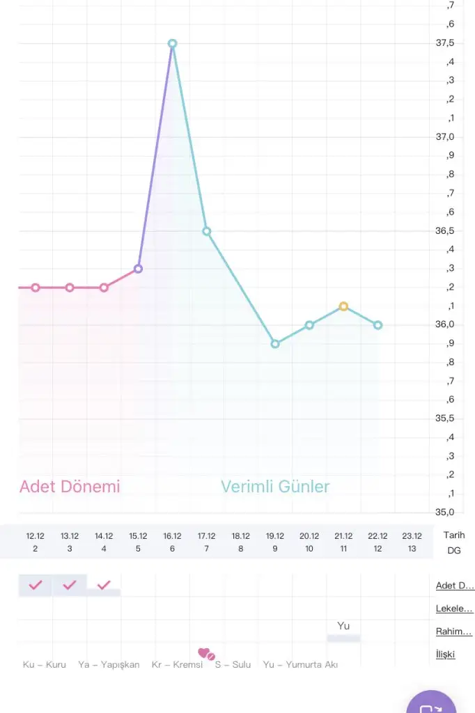 henuz gözkmüyor kuzum hasta ıse fln olabalır zaten yum olsa devamında yuksek seyretmesı gererkırdıErken mi Yumrtlama oldu kuzum :) benim henüzyok :) bi ara ateşim yükselmişti ama hafif rahatsızdım belkide o yüzden Eki Görüntüle 3180496