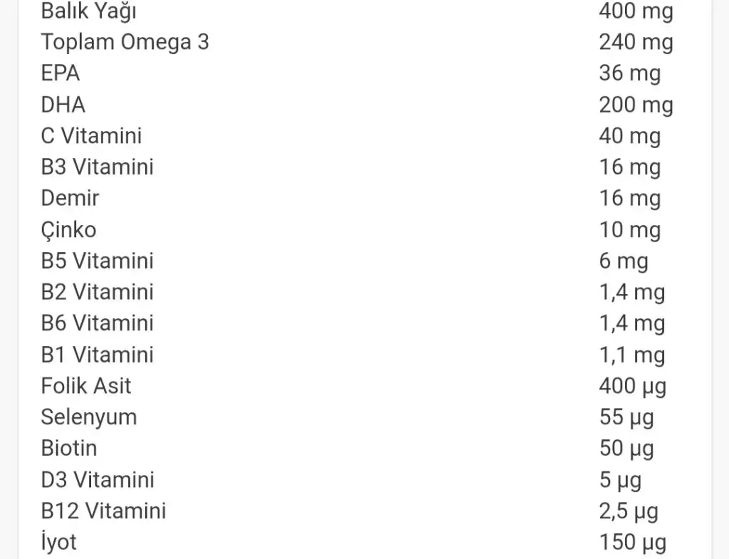 İçeriği bunlar canım hem folik asit hemde diğer vitamin destekleri