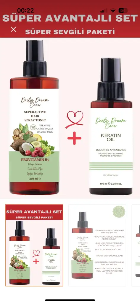 ikincisi saç losyonu günde 10 damla döküyorsun saç diplerine ve masaj yapıyorsun.