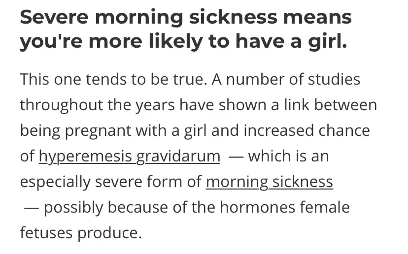 Bu araştırmaya göre benimki erkek gibi görünüyor kızkardeşlerimin kızları var onlarda çok kötü mide bulantıları vardı ama bende hiç yok. Annemde de hiç yoktu ama çocuklarının yarısı kız yarısı erkekEvet kizlar ailenizin arastirmacisi yine bi haberle geldi. Bazimizin mide bulantilari cok agirken bazimisin normal seviyedi (mesela benim hergun kusacak ya da ilac alacak kadar kotu olmuyor ama ara ara kustugum ve aksamlari ozellikle bi mide bulantisi furyam oluyor) Bilim adamlari hamile kadinlarda cok mide bulantisi yasayanlarin cogunlukla kiz bebek, az bulanti ya da hic yasamayanlarin erkek bebek hamileligi yasadigini bulmus. Kiz bebeklerden yayilan ostrojen hormonunun mide bulantisini ikiye katladigi tespit edilmis. Bu yakin arkadaslarimda test ettim bi arkadasim ilk 3 ay cok kotuydu hatta evine biz yemek goturuyorduk ve kizi oldu diger arkadasimin hic mide bulantisi yoktu ve oglu oldu. Tabii sonuclar sizin genetik yatkinliginizla alakali da degisebilir bunlar sadece olasilik.