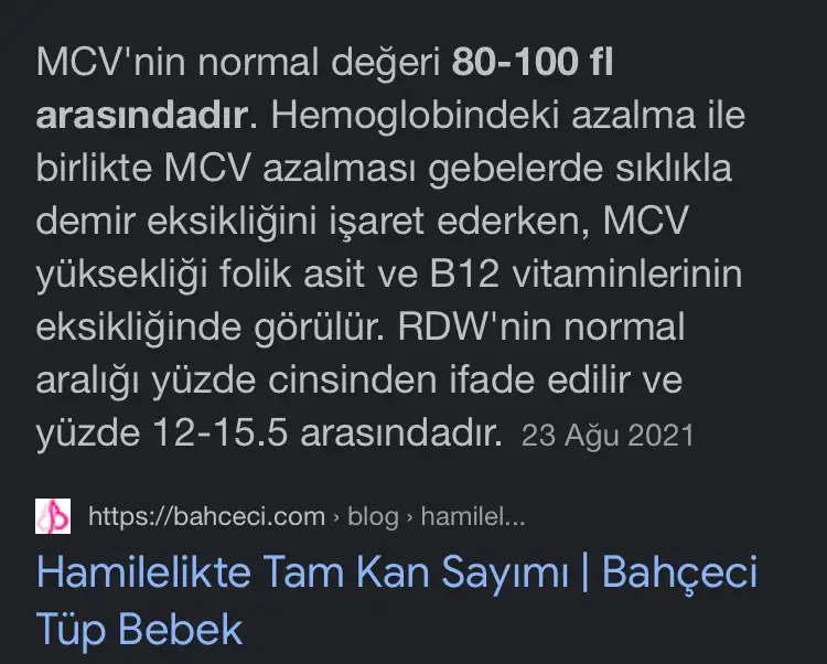 Yok virüsmüş grip gibi oluyormuş hatta grip misin falan dedi yok dedim hicbir şey yok hamile olmasan hiç farkedilmez bile ama hamilelikte risk taşıyor dedi bebeğe zarar verebilir ama kadın doğum doktoru bilir ben tam bilgiye sahip değilim dedi çok fena oldum keşke hicbir şey demeden gidip göster deseydi ama yarın öğlene aldım inşallah bir şey olmaz der çok endişeliyimCanim gecmis olsun oncelikle mcv kirmizi kan hucrelerinin buyuklugu degil mi yanlis mi biliyorum? Virus tam olarak ne oluyomus. Pihtilasma gibi bisey mi?