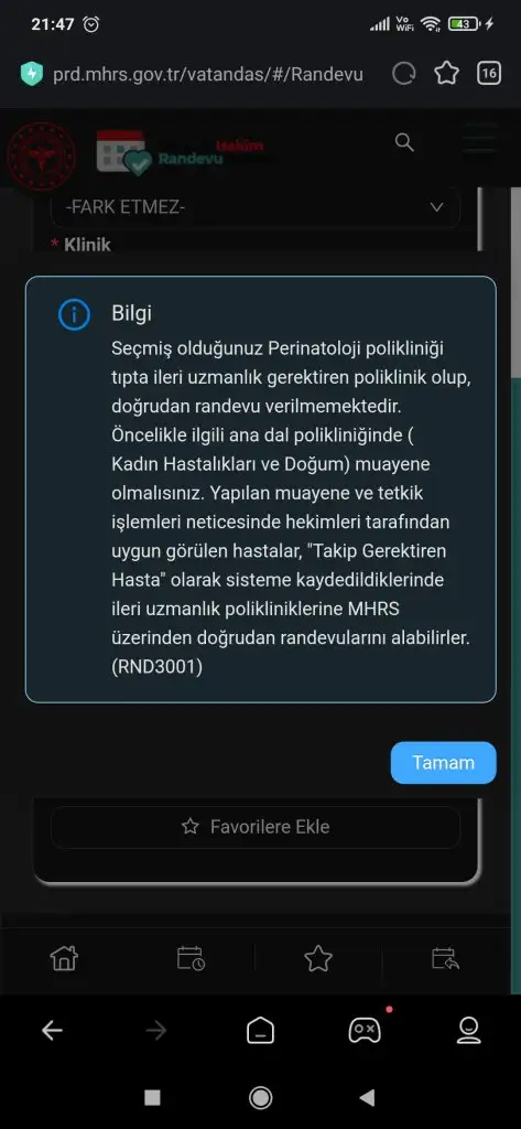 Yine aynı yazı çıkıyor geçen de böyleydiŞimdi sen mrhsden perinatolojiyi arattirdigin zaman uygun randevu yok mu yaziyor yoksa hic hastane mi çıkmadan seni sisteme sokmuyor. Sana sevk vermişti çıkması lazım. Randevu olmayabilir ama aramada çıkması lazım canım