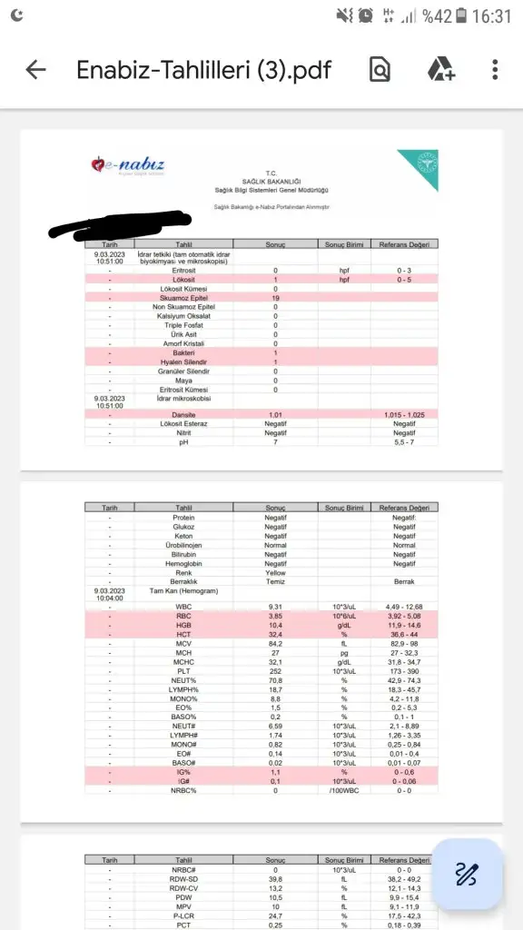 Doktor kan tahlilerimi gordude idrar tahlileri cikmamisti