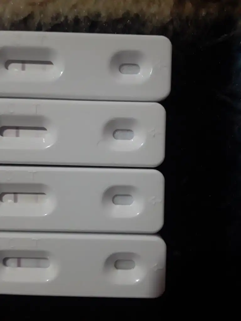 ya sanki hiç pik olmamış gibi hepsi aynı silik.ovulasyon testleri. en üstteki 31 aralik sonraki 2 ocak sonraki 4 ocak en sonkide 7 ocak az önce yaptim. anlamadim ben ya bu testler durdukce rengi aciliyor sanki. 4 tane vardi yaptim baska alamam. degerlendirmeye calisiyoruz. yumurta ne zaman catladi yada catlayacak ? en sonki test dahami koyu bi öncekinden ? cok zaman gecti dogum kontrol hapini birakali bugün 27. gün. degerlendiriyoruz o günden beri. yumurta catlamamismi bende acaba daha ? baska test yapamiycam artik. 21 ocakta yani dogum kontrol hapini biraktiktan 41 gün sonra oluyor sanirim. o güne kadar zaten ya adet olurum yada erken gebelik testinde birseyler görünür belki. nasil sabredecegim o güne kadar bilmiyorum. daha öncesinde birseyler hissedersem erkende yapabilirim testi paylasirim yine burada.