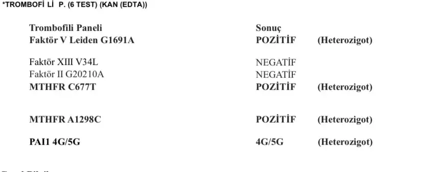Canım pek bildiğim yok ama faktör5 olan değer önemliymiş sanırım pıhtılaşma görünüyor sende de sanırım. Bende de faktör5 heterozigot. Ben doktor kontrolünde 4aydır coraspin kullanıyorum. Gebelik oluştuğu an da iğneye başlıcam. Doktoruna sor sana izlemen gereken tedaviyi yönlendirecektirKızlar selam, ortadan dalıyorum kusura bakmayın. Biz de bebek istiyoruz geçen ay bir kimyasalım oldu maalesef, genetik testten anlayan var mı sonuçlarımı ekliyorum![]()