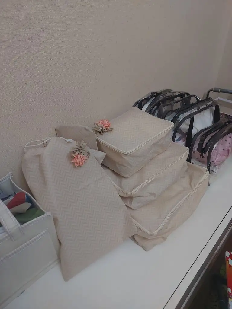 Önceki 2 doğumda annem anlatmama rağmen herseyi birbirine kattığı için bu defa bebeğin eşyalarını şeffaf çantalara yerleştirdim Bende çamaşır ped falan olunca onlar hurçta Artık göre göre de dağıtmaz inşallah![]()
