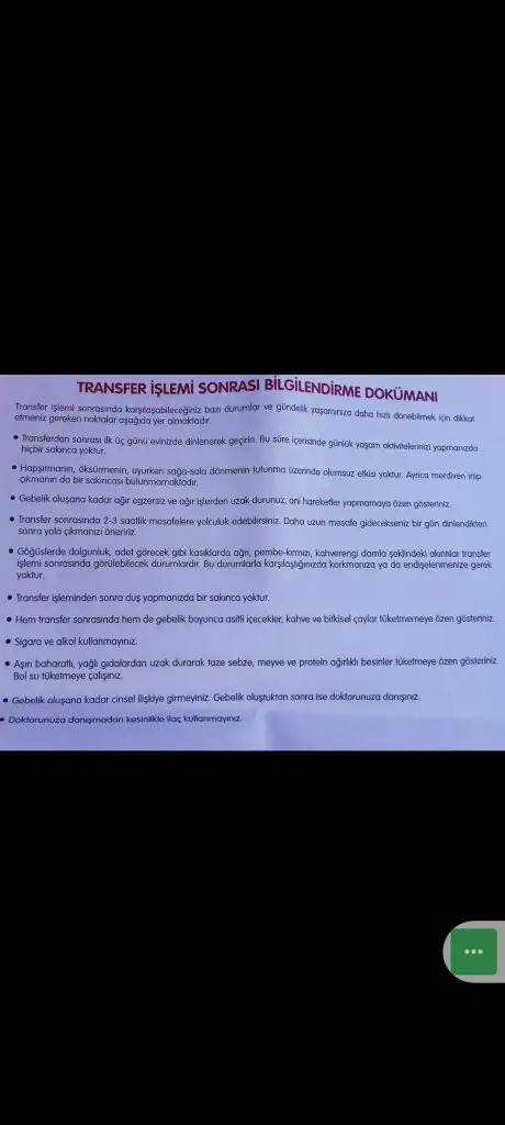 Yok canim transferden once kalcadan basladik 1 haftadir devam simdi bide gobekten iki igne eklendi. 3 unede 12 gun devam edicekmisim. Igne neysede taksiyle git gel korkuyorum arabalar cukura girdikce stres oluyorumGaranti için sanırım