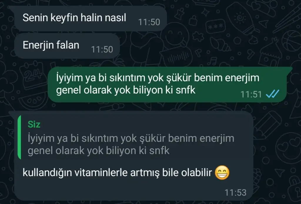 Ne zaman müsaitsin görüşelim ☺İstanbuldayım, oluuurduygusal hiçbir şey yok bende ya genel bir kendimden memnuniyetsizliğim var