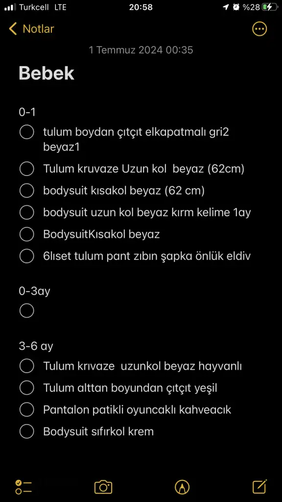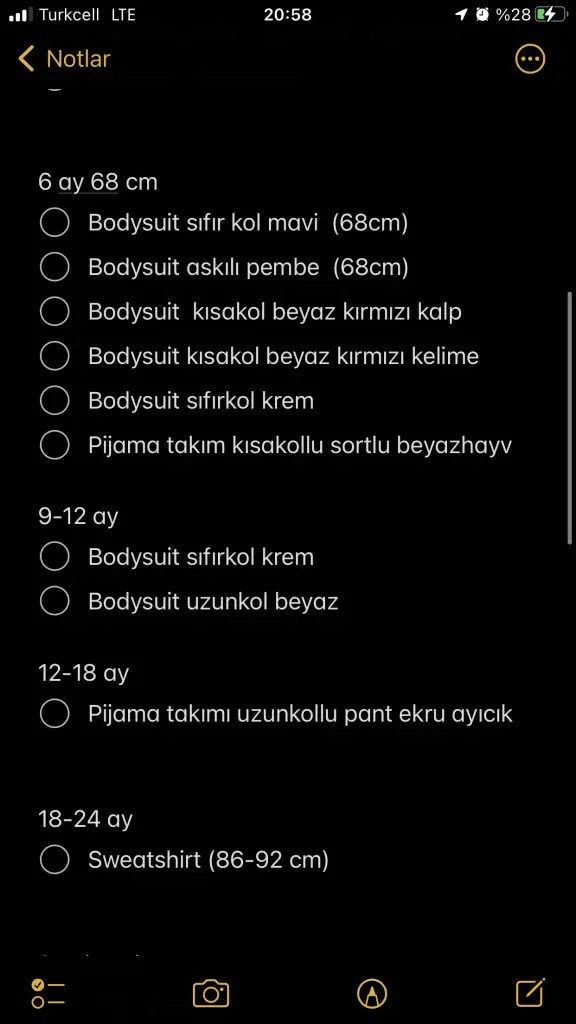 Bende kıyafetleri liste yapmaya karar verdim. Ama dediğin gibi üzerinde ay yazıyor bazılarında cm de yazıyor ama bazı ürünlerde cm yazmıyor kalıplar değişik gibi.Ben yenidoğan 5 takım aldım geçenlerde. Ama ne alakaysa biri küçücük biri 12 aylık görünüyor. O yüzden 5 tane yenidoğanım yok sayabilirizçocuk etli butlu doğar uzun doğar bu yenidoğanlar küçük kalır falan o yüzden çok da abartmak istemiyorum