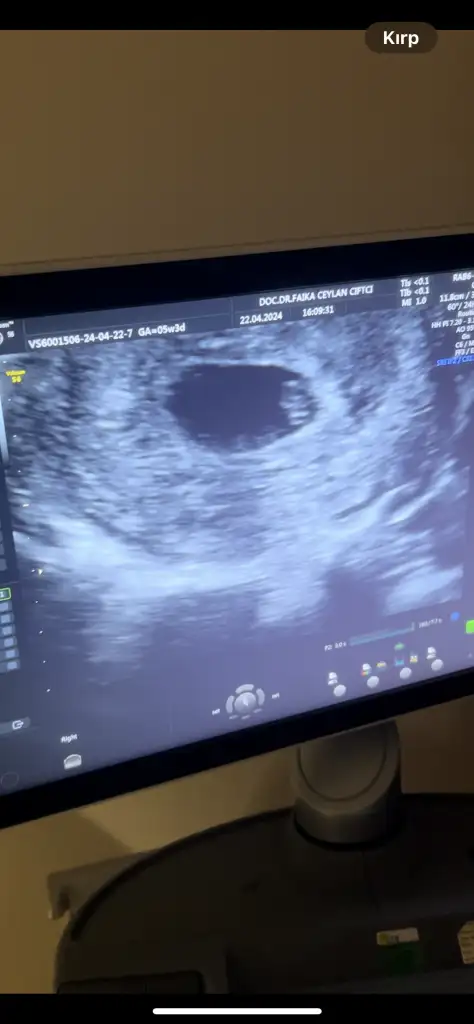 Bugün (6+3’te) şükürler olsun ilk kontrolümüze gidebildikKesemizi gördük, içinde de minik bir kelebeğin nabzı atıyordu tık tık Çok kısa da olsa dinletti doktorumuz