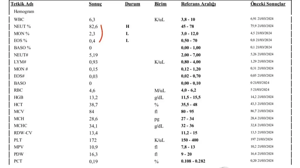 Sağ ol canım inşallah öyledirYa hafif üst solunum yolu enfeksiyonunda bile bu degerler az oynayabiliyor siz yine danışın doktorunuza ama endişelencek bir farklılık yok burda