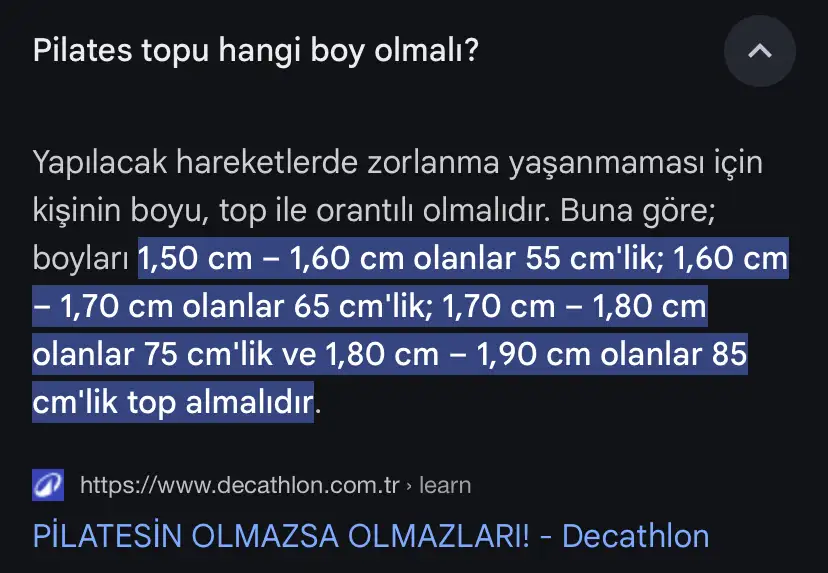 Benimkisi 65ti sanırsam gayette işimi görüyor yeterli bence. Youtube videolarıyla genelde yoga pilates yaparım orada da büyük bir ayrım görmedimKızlar pilates topu almak istiyorum. 65 cm mi 75 cm mi almalıyım acaba