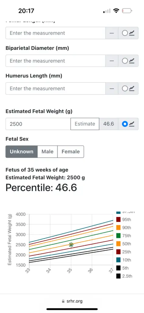 Evet turkce sitelerde ve turkiyede niyeyse pek anne karni icin percentileden bahsedilmiyor ama avrupa ve amerikada daha cok onun ustunden yorum yapiyor doktor. Su siteden bakabilirsin. Ilk satirda Gestional Age yazan yere hafta ve gun girip, en alt satirdaki yere de kilosunu yaziyorsun sagindaki butona tiklamayi unutmadan. En altta veriyor sonucu.